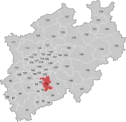 Rheinisch-Bergischer Kreis is an electoral constituency (German: Wahlkreis) represented in the Bundestag. It elects one member via first-past-the-post voting. Under the current constituency numbering system, it is designated as constituency 99. It is located in western North Rhine-Westphalia, comprising the Rheinisch-Bergischer Kreis district.[1]
