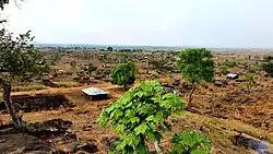 An aerial view of a cluster in Rhino camp refugee settlement