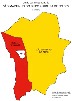Ribeira de Frades is a former civil parish in the municipality of Coimbra, Portugal. The population in 2011 was 1,902, in an area of 6.10 km2.[1] On 28 January 2013 it merged with São Martinho do Bispo to form São Martinho do Bispo e Ribeira de Frades.[2] It was one of the only freguesias with enclaves and exclaves. After the merging its enclave was maintained.