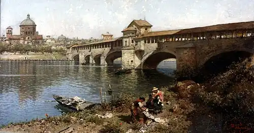 Medieval bridge over Ticino at Pavia, circa 1900, (Fondazione Cariplo)