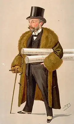 Richard D'Oyly Carte (ⓘ; 3 May 1844 – 3 April 1901) was an English talent agent, theatrical impresario, composer, and hotelier during the latter half of the Victorian era. He built two of London's theatres and a hotel empire, while also establishing an opera company that ran continuously for over a hundred years and a management agency representing some of the most important artists of the day.