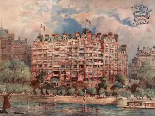 Though the 1890s brought Carte more disappointments than hits in the theatre, his hotel business prospered and grew. He acquired Simpson's-in-the-Strand[133] and Claridge's Hotel, both of which he entirely rebuilt.[134] There was one grave setback, in 1897, when he had to dismiss his manager, Ritz, and his star chef, Escoffier, for financial misconduct.[135] Carte's choice as successor to Ritz was George Reeves-Smith, manager and part-owner of the Berkeley Hotel. To secure his services, Carte bought the Berkeley in 1900 and promoted Reeves-Smith to be managing director of the whole Savoy Group.[136] Carte had used the same method, a year earlier, to secure a new maître d'hôtel. He was determined to engage M. Joseph, proprietor of the Marivaux Restaurant in Paris, then at the height of its fame. Carte was seriously ill, but he insisted on being carried to the boat-train. In Paris he bought the Marivaux and returned with Joseph to the Savoy.[137]