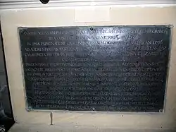 A portrait of Sir Richard Leveson, said to be by Anthony van Dyck, belongs to the Duke of Sutherland,[29] the head of the Leveson-Gower family. Probably this painting was of the Royalist Member of Parliament, Sir Richard Leveson. This later Sir Richard was the uncle of Lady Christian (Leveson) Temple who had married the Duke of Buckingham and Chandos's ancestor, Sir Peter Temple.[30] This portrait was purchased for £65 02s 00p from the sale of the possessions of the Dukes of Buckingham and Chandos held at Stowe House, Buckinghamshire in 1848. It was described in the sale catalogue as by Van Dyck (whereas other paintings are described as 'after Van Dyck' or a 'copy of Van Dyck'). The catalogue records that Sir Richard is shown 'in a black dress, with a frill'and that the painting was 'bought 'after a very active competition.'[30]