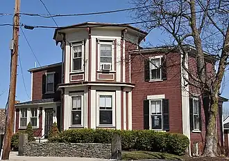 The Richard Pinkham House is a historic house at 24 Brooks Park in Medford, Massachusetts. The unusually shaped Italianate wood-frame house was built c. 1850 by Richard Pinkham, a housewright who then lived in the property. The house is unique in Medford in the presence of a 2+1⁄2-story octagon section, which rises above the rest of the roughly cruciform house. It was built on a portion of the route of the Middlesex Canal, portions of which were at that time being sold off by its owners.[2]