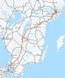Riksväg 1's stretching between Helsingborg and Stockholm.