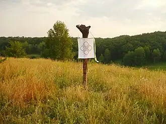 The desired place for living is chosen individually in nature, and a "love space" is established on it as the kinship homestead, opening "Heaven on Earth".[59] Many kinship homesteads of one hectare of land may constitute larger kinship settlements (родовое поселение, rodovoye poseleniye), or ecovillages,[99] such as Inberen in Sargatsky District, Omsk Oblast, the oldest and largest Anastasian settlement in Russia which was founded in 2002 and as of 2018 comprised 130 hectares of land distributed as many kinship homesteads.[100]