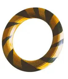The ring is made of rubber, weighs between 160 and 165 grams (5.8 oz), and has a diameter of 17 centimetres (6.7 in).