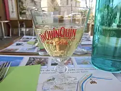 Rinquinquin is a peach apéritif produced in the south of France. It is made by infusing sweet peaches and delicate peach in a 100 proof neutral spirit. The results are mixed with white wine, essential oils of citrus and sugar.[1]