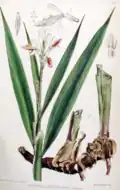 Lesser galangal shown in a plate from Medicinal Plants (1880)