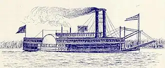 Robert E. Lee, nicknamed the "Monarch of the Mississippi", was a steamboat built in New Albany, Indiana, in 1866.[a] The hull was designed by DeWitt Hill, and the riverboat cost more than $200,000 to build.[2] She was named for General Robert E. Lee, General in Chief of the Armies of the Confederate States. The steamboat gained its greatest fame for racing and beating the then-current speed record holder, Natchez, in an 1870 steamboat race.[3][4]
