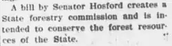 In 1909, Hosford served as the Chairman of the Committee on Agriculture and Forestry in the Florida Senate.[12] While serving as Committee Chair, he introduced a bill to aid in the conservation of state forests and to create a state forestry commission.[13][14] He also served on a number of other Committees in 1909: the Immigration Committee, Indian Affairs Committee, the Pensions Committee, the Prison and Convicts Committee, and the Privileges and Elections Committee.[15][16]