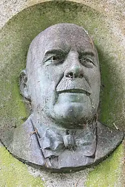 He is buried in Dean Cemetery on one of the curving paths to the south-west. His portrait is sculpted on the memorial by John Stevenson Rhind.