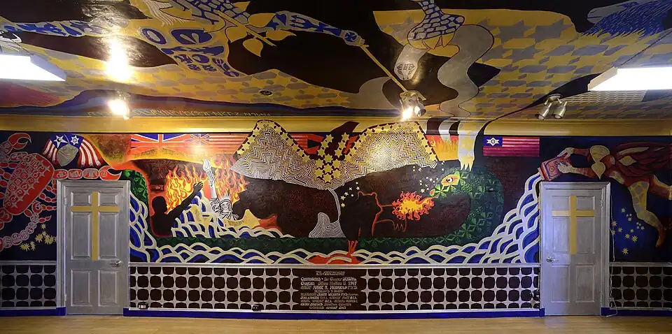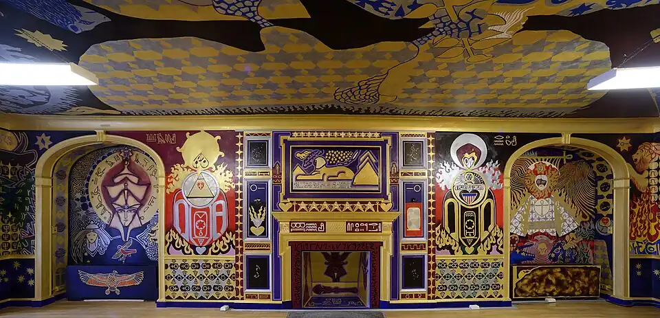 Photograph of the Egypt wall (plus ceiling) at Hieronimus' full-room Apocalypse mural, located in Johns Hopkins University's Levering Hall.