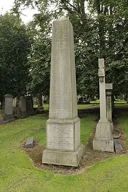 He lived most of his life at 19 Inverleith Row in the northern Edinburgh suburbs.[9] He died there on 29 October 1893. He is buried in Grange Cemetery in south Edinburgh. The grave lies in the north-west area of the main north-west section.