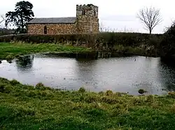 Stretton continued the work of his predecessors in maintaining Lichfield Cathedral as a centre of pilgrimage. Early in the century, Bishop Walter Langton had ordered an expensive new shrine for St Chad from Paris.[36] It was installed in a temporary position, between the High Altar and the unfinished Lady Chapel. In 1378, with the work complete, Stretton had the shrine moved to its final position — probably on a marble table next to the Lady Chapel. On 4 September that year he established a chantry for himself in the chapel of St Giles at Great Stretton – a project envisaged as early as 1350.[3] He endowed it with 8 virgates of land and a wide range of domestic properties and meadows.[37] Ralph, the first chaplain, was to pray for Stretton and for his soul after death, as well as for the souls of Edward III, the Black Prince and a number of Stretton family members. Earlier opinion held that the chantry was in a separate building in a moated area about 200 metres from the parish church,[38] but it is now thought this was mistaken and that the chantry was within the church building.[4]