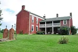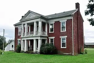 It is a two-story brick center passage plan home that includes Greek Revival details in its interior as well as in its exterior. It has a front portico with two pairs of columns, and pilasters flanking the door. [2]
