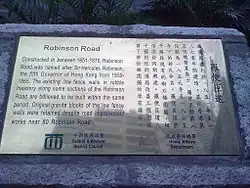 Robinson Road was named after the fifth Governor of Hong Kong, Sir Hercules Robinson.[1]