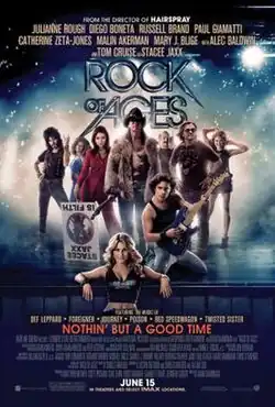 Rock of Ages is a 2012 American jukebox musical comedy film directed by Adam Shankman from a screenplay by Chris D'Arienzo, Allan Loeb, and Justin Theroux, based on the rock jukebox Broadway musical Rock of Ages by D'Arienzo. Produced by New Line Cinema and Corner Stone Entertainment in association with Offspring Entertainment and Material Pictures, and distributed by Warner Bros. Pictures, the film stars Julianne Hough and Diego Boneta (in his film debut), leading an ensemble cast that includes Russell Brand, Alec Baldwin, Paul Giamatti, Catherine Zeta-Jones, Malin Åkerman, Mary J. Blige, Bryan Cranston and Tom Cruise. Like the stage musical, the film features the music of many 1980s rock artists including Def Leppard, Journey, Scorpions, Poison, Foreigner, Guns N' Roses, Pat Benatar, Joan Jett, Bon Jovi, Twisted Sister, Whitesnake, REO Speedwagon, and others.