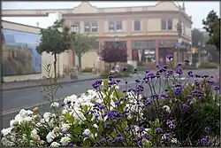 Broadway and Holladay intersection in Seaside, OR. The mural is located on the left of this road.