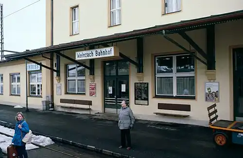 Rohrbach (Ilm) station (German: Bahnhof Rohrbach (Ilm)) is a railway station in the town of Rohrbach, in Bavaria, Germany. Until 2000, it was called Wolnzach Bahnhof after the larger town Wolnzach five kilometers to the east.