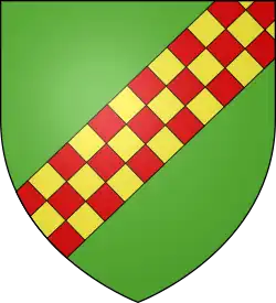 ![]() Arms of Vaux of Tryermain: Vert, a bend sinister chequy or and gules. | |