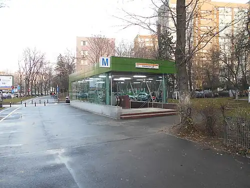 Romancierilor is a station on line M5 of Bucharest Metro. The adjacent stations are Parc Drumul Taberei (towards Eroilor), Valea Ialomiței, and Constantin Brâncuși (towards Râul Doamnei). The station was opened on 15 September 2020 as part of the inaugural section of M5, from Eroilor to Valea Ialomiței and Râul Doamnei.[1]