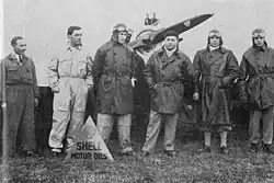- † At Kimberley airport, left to right: Stengher, Olteanu, Jienescu, Captain Fisher – Chief of Airport, Cernescu, Davidescu, Pantazi.