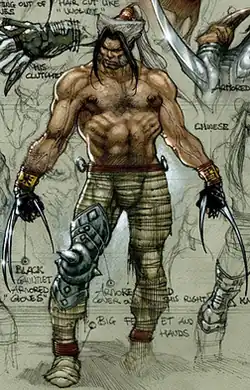 He appears to have ties with Russian authorities, arranging Omega Red's transfer to a regular Russian prison to set a trap for Wolverine.[9] After Wolverine temporarily subdues Omega Red, he is captured by Wild Child, who reveals that Romulus made Logan and several villains battle each other, his agenda being vaguely described as him needing a successor. Moments after Wolverine uses the Muramasa blade to kill Omega Red, Romulus reveals himself in front of him, prepared for battle with four claws already extended (the three between the knuckles of his fingers and one extending from behind his thumb).[10] Wolverine attacks Romulus but is easily overpowered since he is only using the sword at this point. Romulus slashes and attacks Wolverine from the shadows as he reveals his plans. Telling Wolverine that everything has led up to this moment. Romulus is what Wolverine will become. Pushing Wolverine to the breaking point, he drops the sword and pops his claws, much to Romulus' amusement. However, Wolverine fights back and gains the upper hand and slashes at Romulus' hand, shattering what turned out to be a clawed gauntlet. Seeing that Romulus' claws are fake, Wolverine taunts him saying, "You're not what I'm gonna become... I'm what you've always wanted to be". Hearing this, Romulus blindly attacks Wolverine with his remaining claws only to be slashed open by Wolverine. Seemingly beaten, Romulus tells Wolverine that although he is at the top of the food chain, by making Daken in his own image, he has set the stage for a confrontation between Wolverine and his son. Only the most ruthless will survive. Only the one most like Romulus. Wolverine defeats Romulus, but leaves him alive saying that he will return when he is ready to finish the job.[11] As Wolverine turns his back, Romulus seizes the opportunity to knock Wolverine unconscious with his own sword. Romulus then leaves, but not before telling Wolverine to keep the Muramasa blade: he will need it. After his confrontation with Wolverine he coordinates a successful assassination in Tokyo from what seems to be his base of operations, a European-style castle. It is here that Romulus first begins to doubt his own understanding of Wolverine's actions.