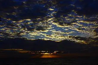 The park is molded by the Caribbean and Panama currents, as well as freshwater from the Canal del Dique.[8] Sediments brought from Magdalena River by the channel is having a negative effect of the park, as it deteriorates the reef.[8] There are no bodies of freshwater in the park, but there is brackish water in some of the lagoons on the islands.[3] Average yearly temperature is 27–30 °C.[4]