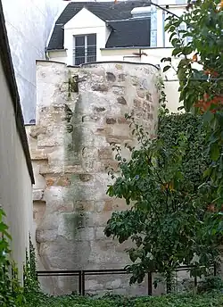 The third and final part of the garden is located behind the Hôtel d'Albret and offers a garden 'shared' between the local residents, espaliers, and highlights one of the 77 towers of the Wall of Philip II Augustus, a listed historical monument.[2]