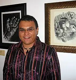 Roy Boney Jr. (ᎧᏂᎦ ᎪᎳᎭ, born December 1, 1978) is a Cherokee comic artist, fine artist, computer animator and language preservationist from Locust Grove, Oklahoma, a citizen of the Cherokee Nation, and a hereditary member of the Deer Clan.[1] Boney was named a Cherokee National Treasure on 29 August 2024.[2]