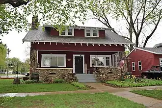 The Roy C. and Lena (Johnson) Seaman House is a historic building located in Cherokee, Iowa, United States. The 1½-story, frame, American Craftsman style Bungalow was completed in 1913. The exterior features a side-gabled roof that extends over the full-width front porch. Of particular note are the decorative field or river stones that are utilized in the porch and the chimney, typical of the Craftsman style.[2] Other decorative elements on the exterior include rafter tails on the porch and above the shed-roofed dormer windows. Much of the original woodwork has been maintained in the interior of the house. Faux timbers extend across the living room and the dining room ceilings. The interior also features built-in cabinets and a brick fireplace. The house was listed on the National Register of Historic Places in 2019.[1]