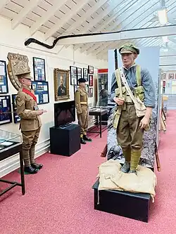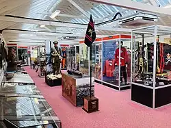 The aim of the RAPTC Museum is to "educate the public and members of the Corps in the history and military accomplishments of the Corps and to promote military efficiency and encourage recruitment by public exhibit of the collection in a museum or museums or such other public places as the Trustees may from time to time decide, and to conserve, restore, repair, reconstruct and preserve objects in the collection.".[3] The museum showcases historic and current day examples of the uniform, medals, weapons, sporting and Olympic memorabilia, personalities, trophies and training equipment used by the RAPTC.[1][4] The displays show how physical training in the British Army has advanced from the first organised training sessions in the 1860s to modern concepts of fitness, health and exercise.[2]