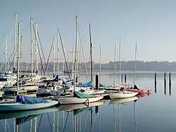 - Marina providing berthing for yachts.
