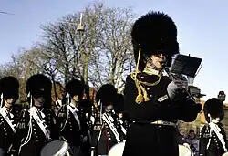 The marching band accompanies the Guard Company during official ceremonies. It performs in ceremonies in the Copenhagen metropolitan area, taking part in state funerals, change of commands, town parades, wreath laying ceremonies and arrival ceremonies.