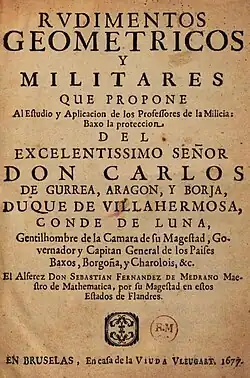 - ^ Medrano, Sebastián Fernández de (1687). El ingeniero: primera parte, de la moderna architectura militar ... (in Spanish). en casa de Lamberto Marchant, mercader de libros, al Buen Pastor.