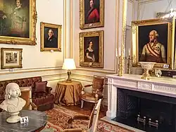 The Small White Drawing Room is decorated with portraits of Louise and her parents, Louis-Philippe and Princess Maria Amalia of Naples and Sicily.[29]