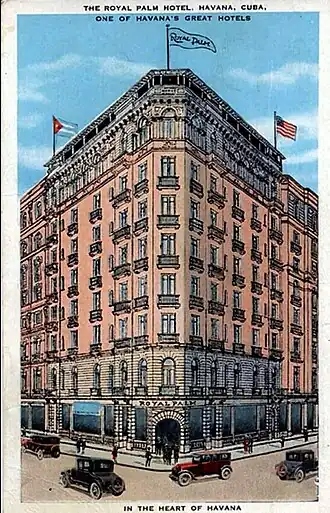 The Royal Palm Hotel, situated at San Rafael and Industria, two blocks from Parque Central, was centrally located in Havana, Cuba.[1][2]