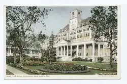 The New York Times noted that by 1904, 10 years after the Royal Poinciana Hotel opened, Palm Beach was a popular tourist destination for parties, golf, tennis, boating, bathing, and fishing.[15] The Royal Poinciana Hotel hosted a celebration for the establishment of Palm Beach County in 1909, alongside Independence Day festivities, which drew hundreds of people from Fort Pierce to Miami and included two amateur baseball games, musical performances by a local band, and a fireworks display.[16] Following Flagler's death in May 1913, his family held a small funeral in St. Augustine,[17] though a memorial service occurred at the Royal Poinciana Chapel during the following March.[18]