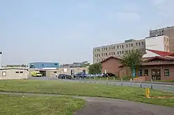 The hospital, which was built to replace the Royal Salop Infirmary in the centre of Shrewsbury and the Copthorne Hospital on the opposite side of the Mytton Oak Road, was opened by the Prince of Wales in 1979.[2] Expansion of the hospital took place when services were transferred from the Ear, Nose and Throat Hospital in the centre of Shrewsbury in 1998.[3]