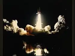 Following the presentation of the pilot film, Yamaga returned to his hometown of Niigata to begin to write the screenplay and draw up storyboards.[73] Yamaga envisioned the fictional Honnêamise kingdom where most of the events of Royal Space Force took place to have the scientific level of the 1950s combined with the atmosphere of America and Europe in the 1930s, but with characters who moved to a modern rhythm. The inspiration he sought to express in anime from Niigata was not its literal look, but rather a sense of the size and feel of the city and its envrions, including its urban geography; the relationships between its old and new parts, and between its denser core and more open spaces.[74] In August 1985, six members of the crew, Yamaga, Okada, Inoue, Sadamoto, and Anno from Gainax, accompanied by Shigeru Watanabe from Bandai, traveled to the United States for a research trip, studying postmodern architecture, aerospace history, and witnessing a launch of the Space Shuttle Discovery. Documentary footage of the trip was shot by Watanabe[75] and incorporated into a promotional film released two weeks before the Japanese premiere of Royal Space Force.[76] Yamaga made revisions to the script during the American research tour.[77]