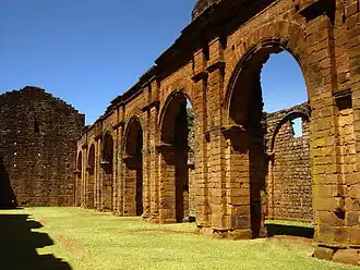 - ^ a b Pereira, Walmir. "Patrimônio Cultural e Memória Social das Missões Jesuíticas Guarani – Ruínas de São Miguel: Ação Patrimonial e Identidade Ameríndia na Região Platina da América do Sul". [Cultural Heritage and Social Memory of the Guaraní Jesuit Missions - Ruins of San Miguel: Heritage Action and Amerindian Identity in the Platine Region of South America] (in Portuguese) In: SURES - Revista Digital do Instituto Latino-Americano de Arte, Cultura e História da Universidade Federal da Integração Latino-Americana, 2013; (2):40-58