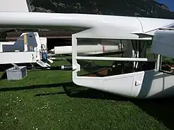 The controls are conventional, with a stick for ailerons and elevator and rudder pedals. The aircraft uses flaps for glidepath control, which function as airbrakes when set to 45-70 degrees. A ballistic parachute with an area of 62 m2 (670 sq ft) is also fitted. The aircraft can be rigged for flight by one person in 15 minutes. It has been launched by foot, aero-tow,[5] bungee launch,[6] auto-tow[7] and winch-launch. Typically take-off and landing are on the main wheel. For foot launch, the bottom cover is opened to stick the legs out. A foot landing has been performed to achieve the FAA class 2 certification.