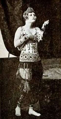 She was in the 1919 theatrical production The Lady in Red (Broadway show).[4][5][6][7][8] She was performing in Europe when World War I broke out. She was arrested as a spy but was released and served as an ambulance driver.[6]