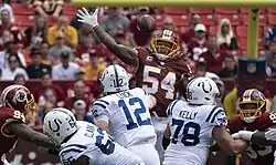 Kelly (right) in a game against the Washington Redskins in 2018.