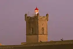 The fort of São Julião da Barra was constructed primarily for defence and follows an irregular pentagonal design. Today it is the national headquarters of the Ministry of National Defence and official residence of the Minister.[3] In 1758 orders were given to build a lighthouse in the fort. However, it is possible that an earlier lighthouse had existed from 1553 but that it was destroyed by the 1755 Lisbon earthquake.[4] The work initially involved building a stone lantern in 1761 but in 1775 an Argand lamp with a parabolic reflector was installed. Between 1848 and 1865 modernization work was carried out and a 4th Order Fresnel lens was installed, producing a fixed white light, fuelled with gas distilled from wood. From 1880 the lighting was obtained from petroleum gas. The lighthouse underwent further repairs in 1893 and 1913. A foghorn was installed in 1916 but almost immediately thereafter operations ceased until 1918 because of the First World War.[5][6]