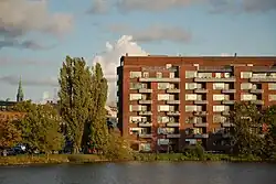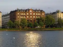 Vester Søgade is dominated by Vestersøhus which was designed by Kay Fisker and C. F. Møller and completed in 1939. With its balcony-bay window concept, it became a model for later Danish residential architecture.[4] The building was listed in 1994.[5]