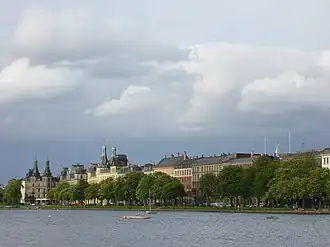 Vester, Nørre and Øster Søgade (lit. "West, North and East Lake Street") is a succession of streets along the eastern side of The Lakes in central Copenhagen, Denmark. The streets run from Gammel Kongevej to the south to the beginning of Østerbrogade at Lille Trianglen in the north. Vester Søgade runs from Gammel Kongevej to Gyldenløvesgade, Nørre Søgade runs from Gyldenløvesgade to Dronning Louises Bro, and Øster Søgade from Dronning Louises Bro to Lille Triangel.