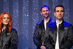 Sara García Alonso, Uznański, and Raphaël Liégeois at the ESA astronaut announcement Class of 2022 in Paris