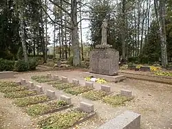 Memorial in Saarde Cemetery to the eighteen children killed in the Kilingi-Nõmme II primary school fire of 1937